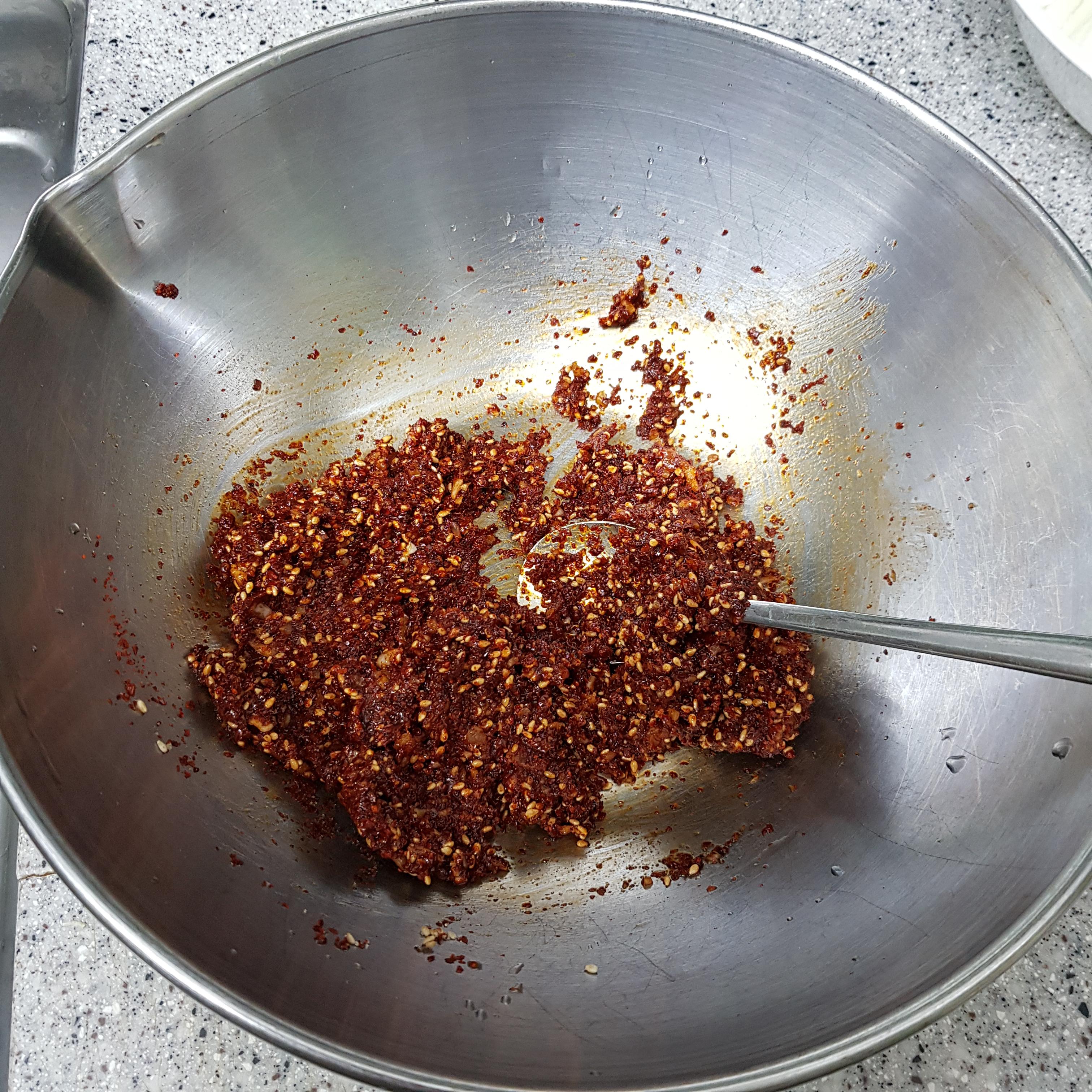 중간 고춧가루 8큰술, 물엿 3큰술, 설탕 1큰술, 다진 마늘 2큰술, 참기름 2큰술, 통깨 2큰술, 멸치액젓 3큰술