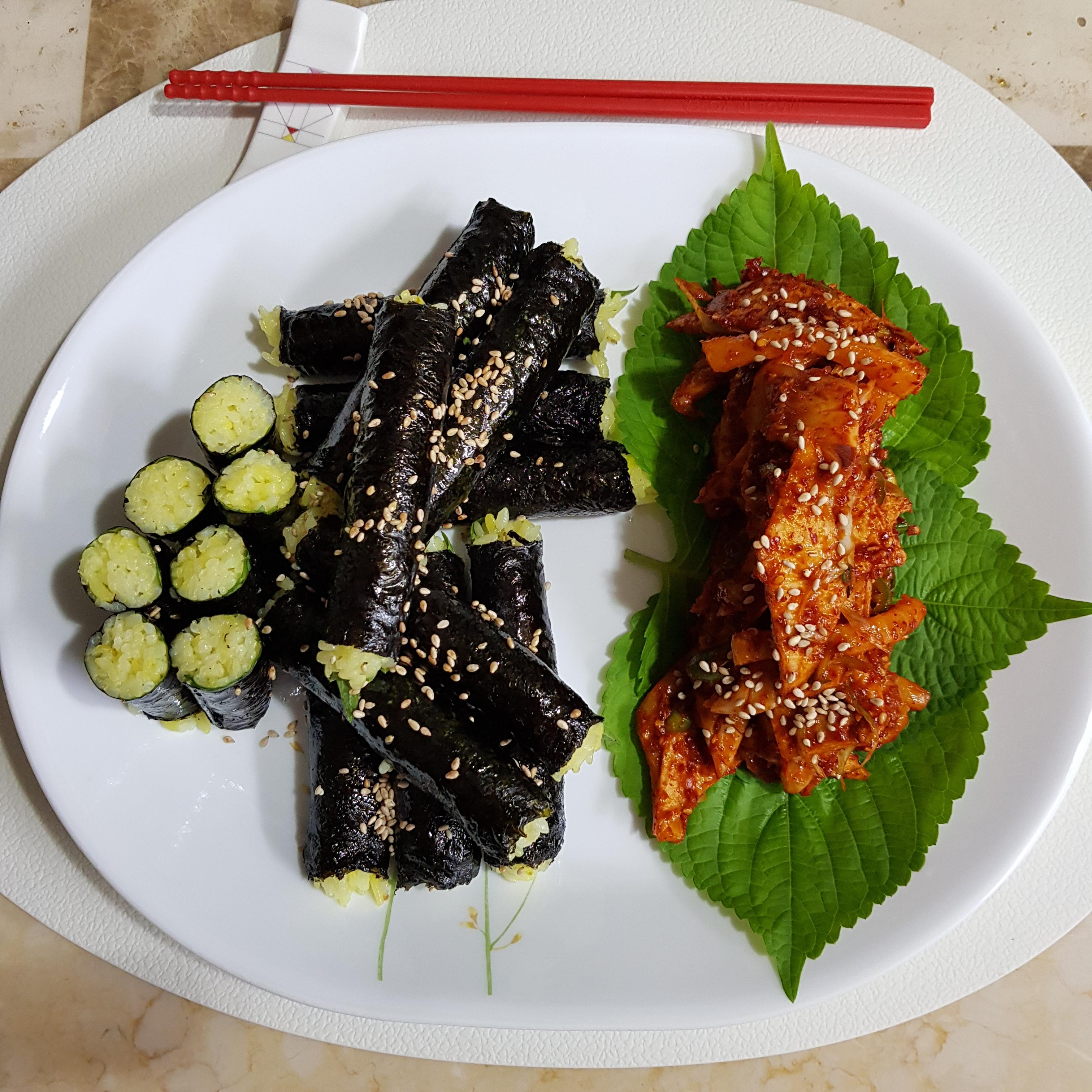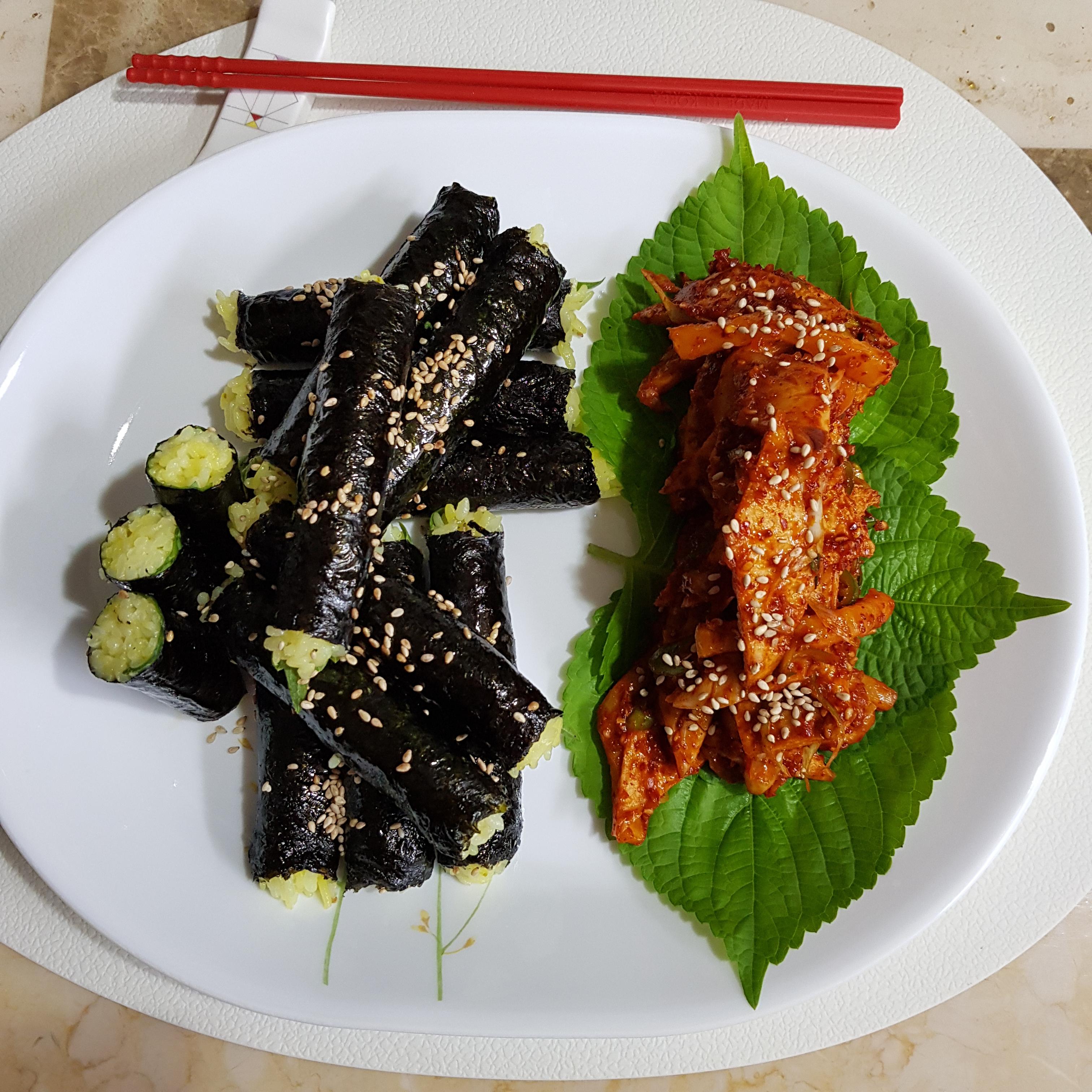 밥 적당히, 깻잎 20장, 김밥김 5장