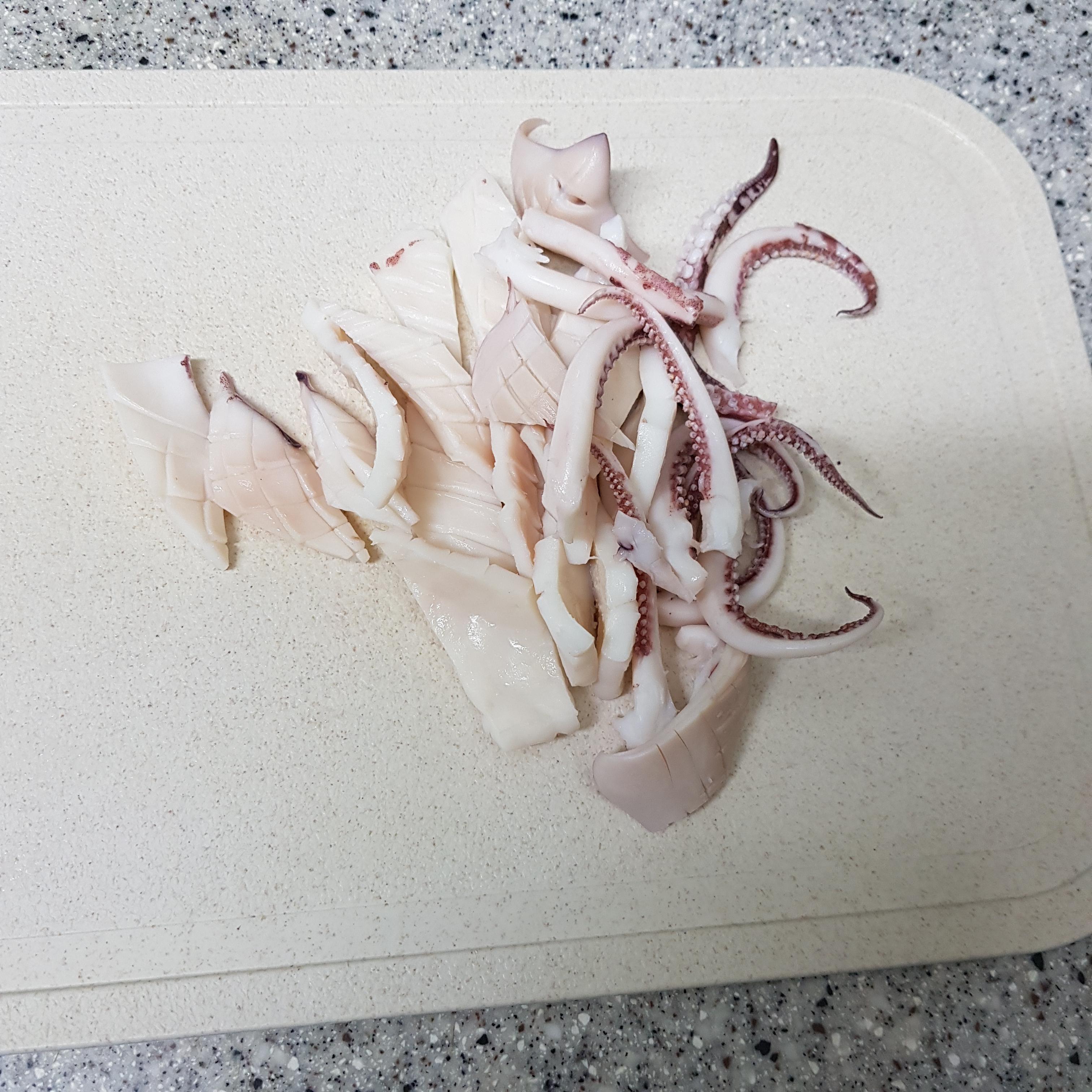 ▶ 물기 뺀 오징어는 먹기 좋은 크기로 잘라 준비해주세요