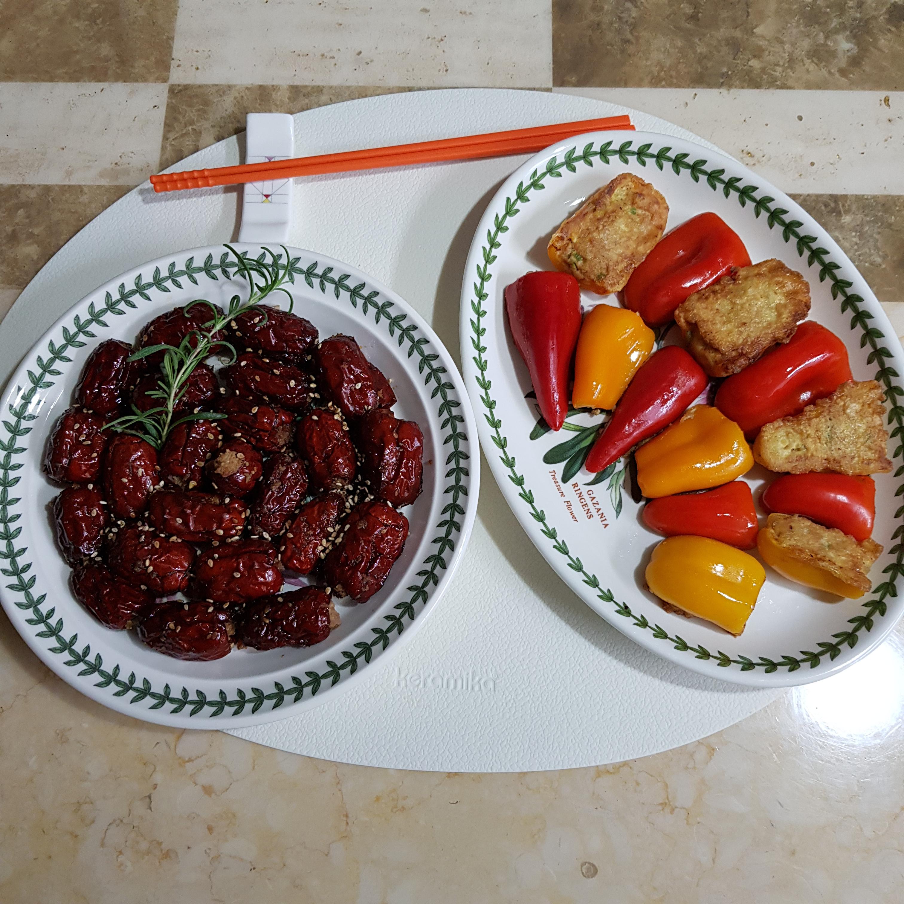 매콤 달콤 짭조름한 대추말이와 아삭 고소 촉촉한 파프리카 전! 냉장고 털이로 만든 눈이 호강하는 밥반찬이나 술안주 또는 별미로 충분하겠죠?^^ 냉장고 속 재료를 활용해 맛있게 한 끼 해결해보세요~