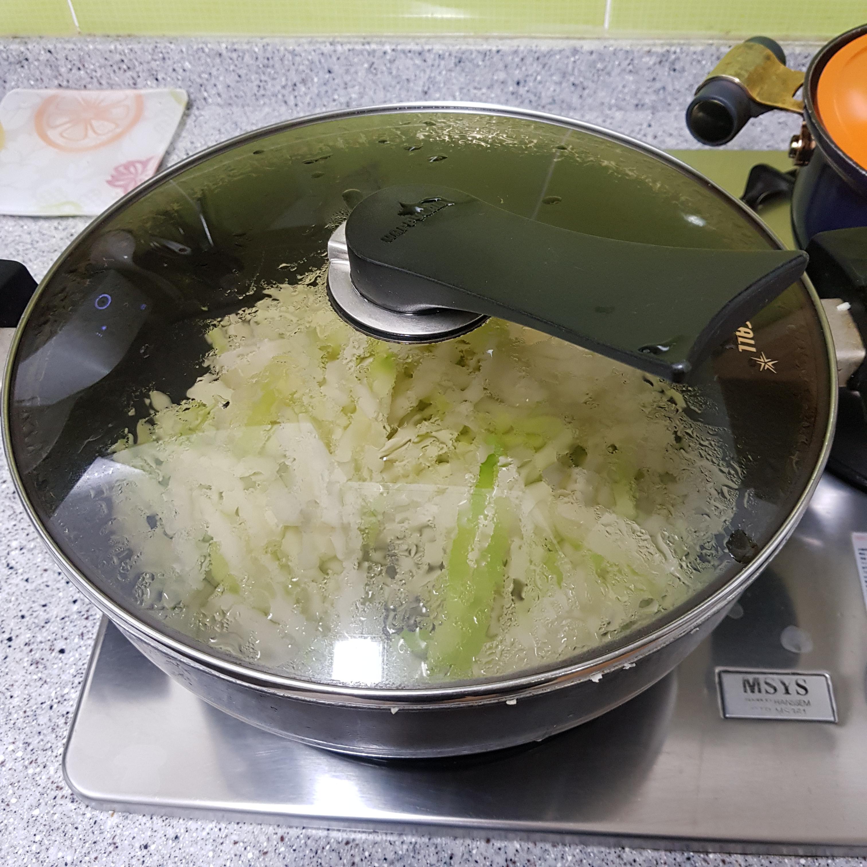 ▶ 뚜껑 닫고 센 불에서 7분 정도 그대로 두면 되는데 중간에 한번 재료를 골고루 섞어주세요 별도의 물을 붓지 않아도 박에서 수분이 나와 눌어붙지 않는답니다