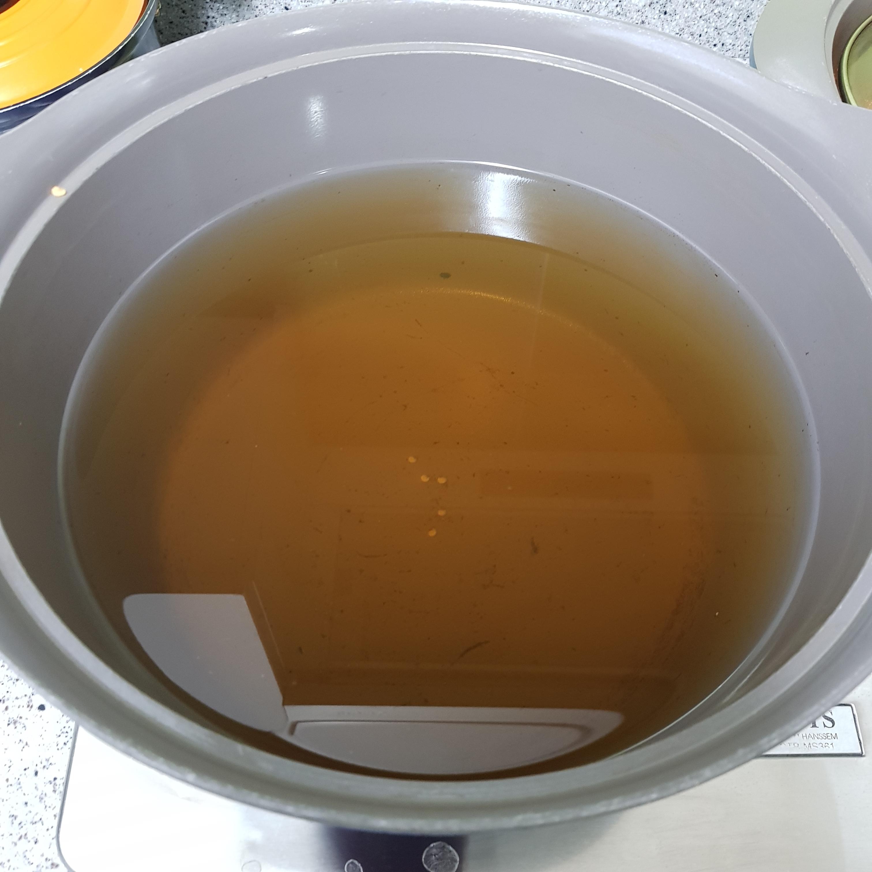 ▶ 준비한 다시마 육수 3L를 넣고 센 불에서 끓기 시작해 7분 정도 끓인 후 꽃소금 1큰술을 넣고 중불에서 10분 정도 더 끓여주세요 이때 뜨는 부유물은 걷어내 주셔야 국물이 시원하답니다 참고해주세요