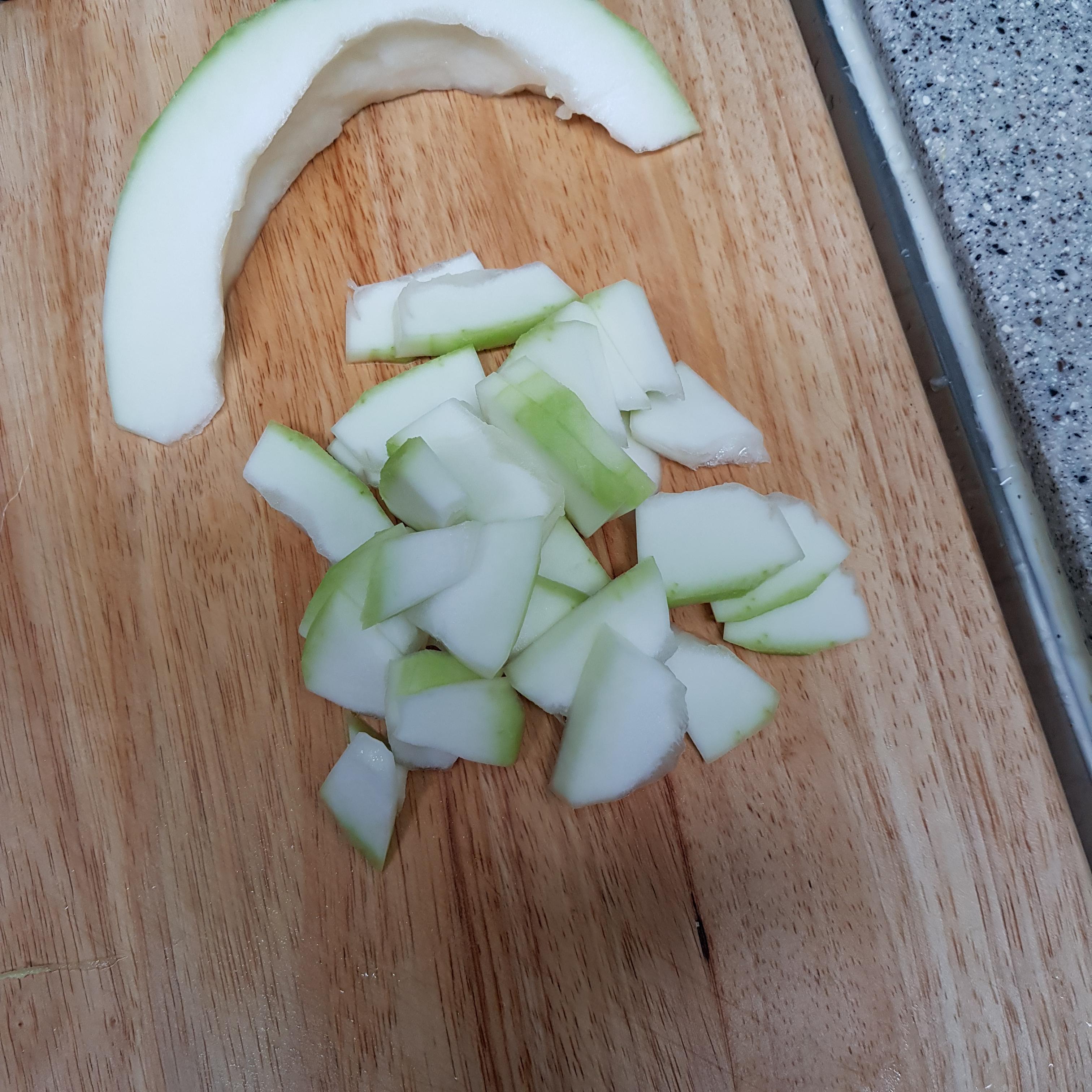 ▶ 속을 파낸 후 껍질을 깎아주고 먹기 좋게 납작하게 썰어서 준비해주세요