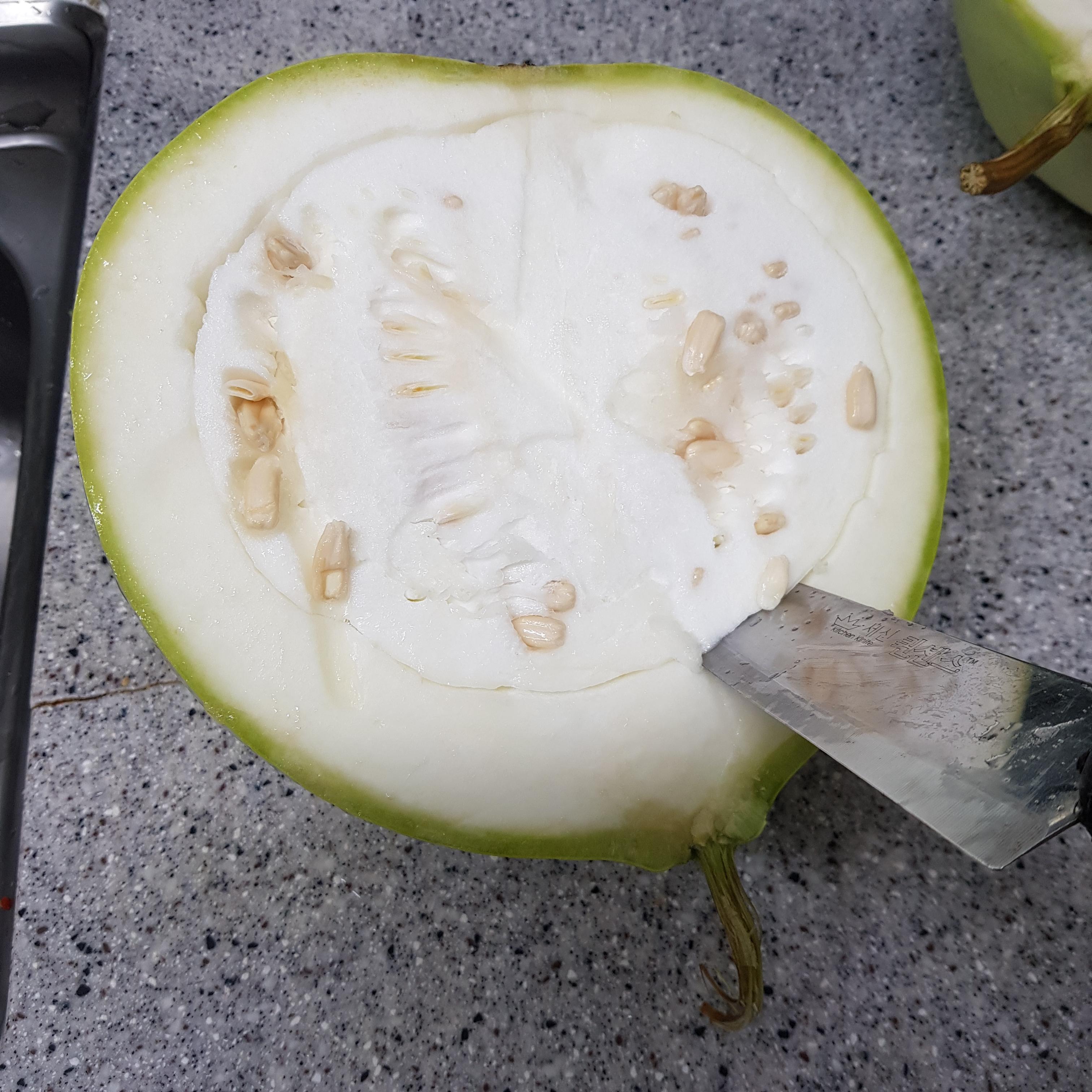 ▶ 박은 반으로 자른 후 속 씨부분을 칼집을 넣어준 후 스푼으로 속을 파내 주세요