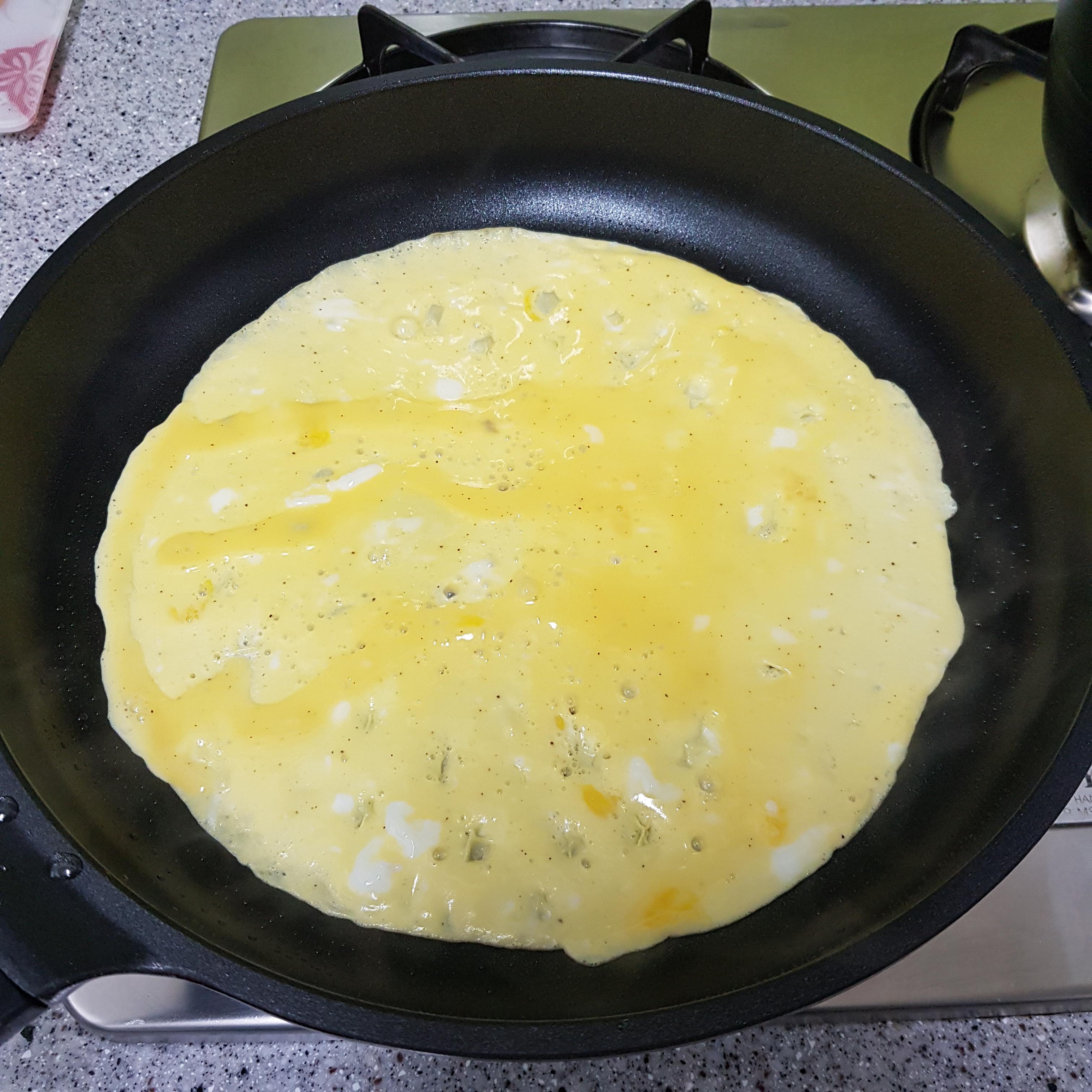 ▶ 올리브유 약간 두르고 달걀지단을 붙여 준비해주세요