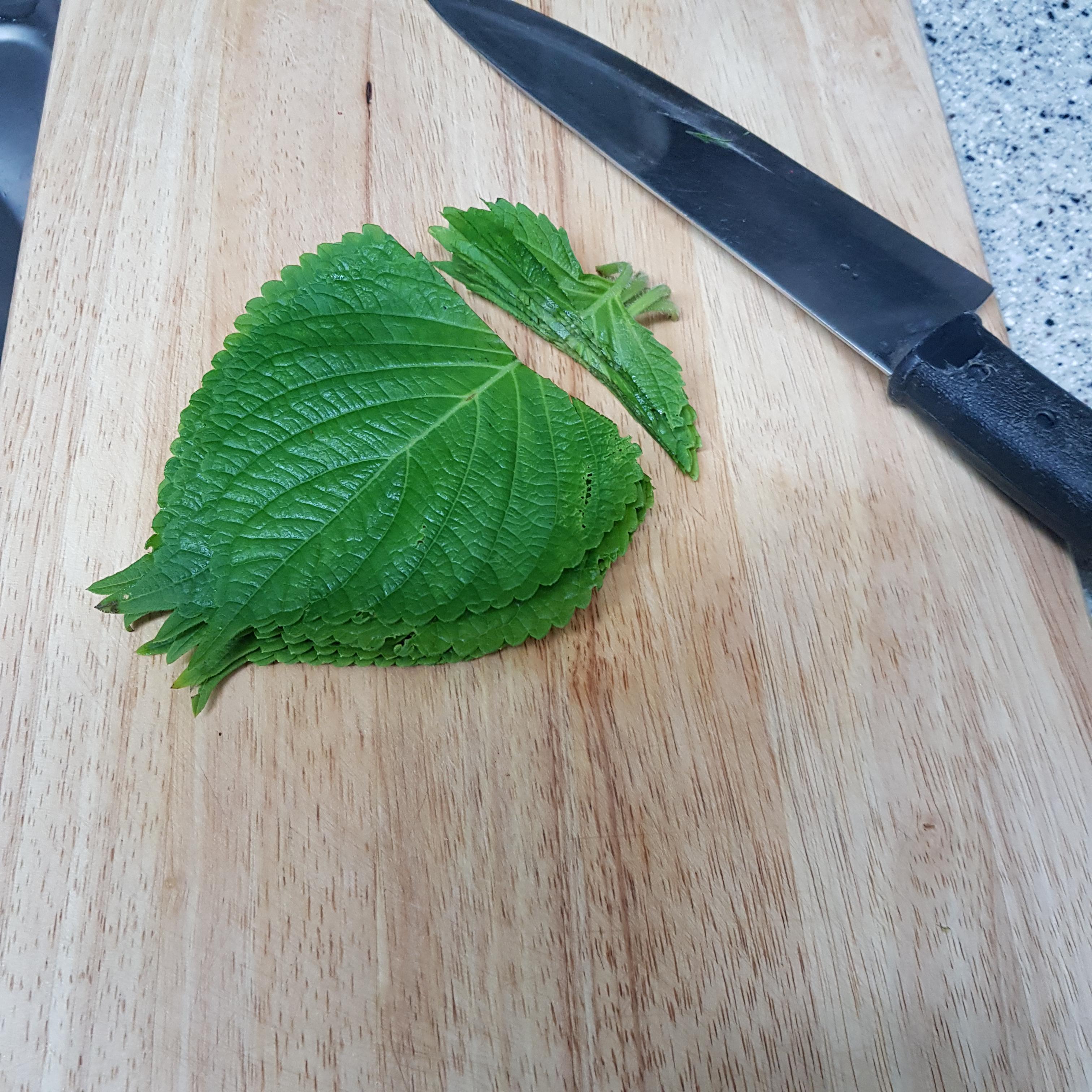 ▶ 깻잎 12장은 꼭지 부분은 잘라 준비해주세요 저는 깻잎이 남아 넣어주었는데 깻잎이 없으면 생략하셔도 된답니다