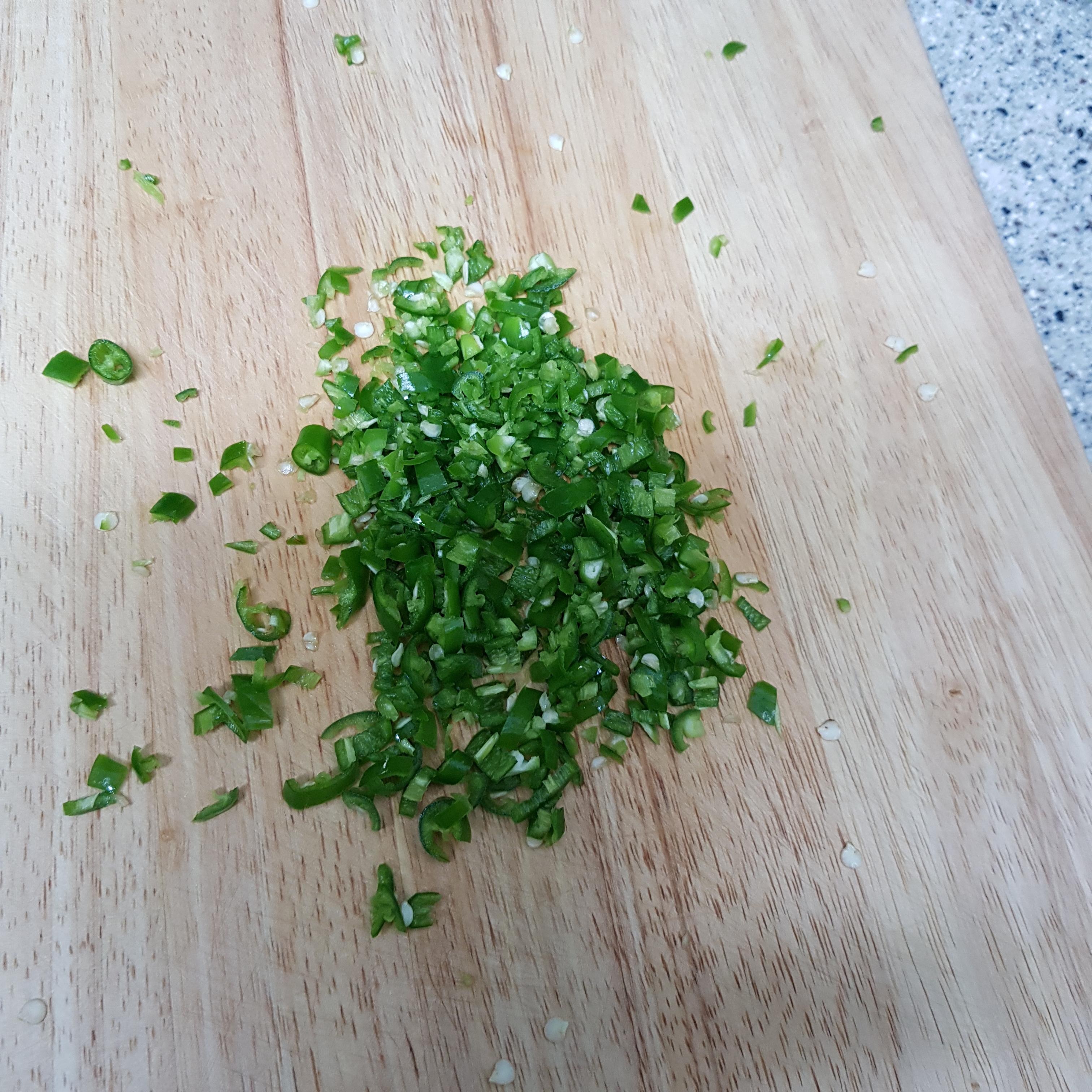 ▶ 깔끔한 맛을 위해 청양고추 5개를 곱게 다져서 준비해주세요 청양고추는 취향껏 준비하시면 됩니다