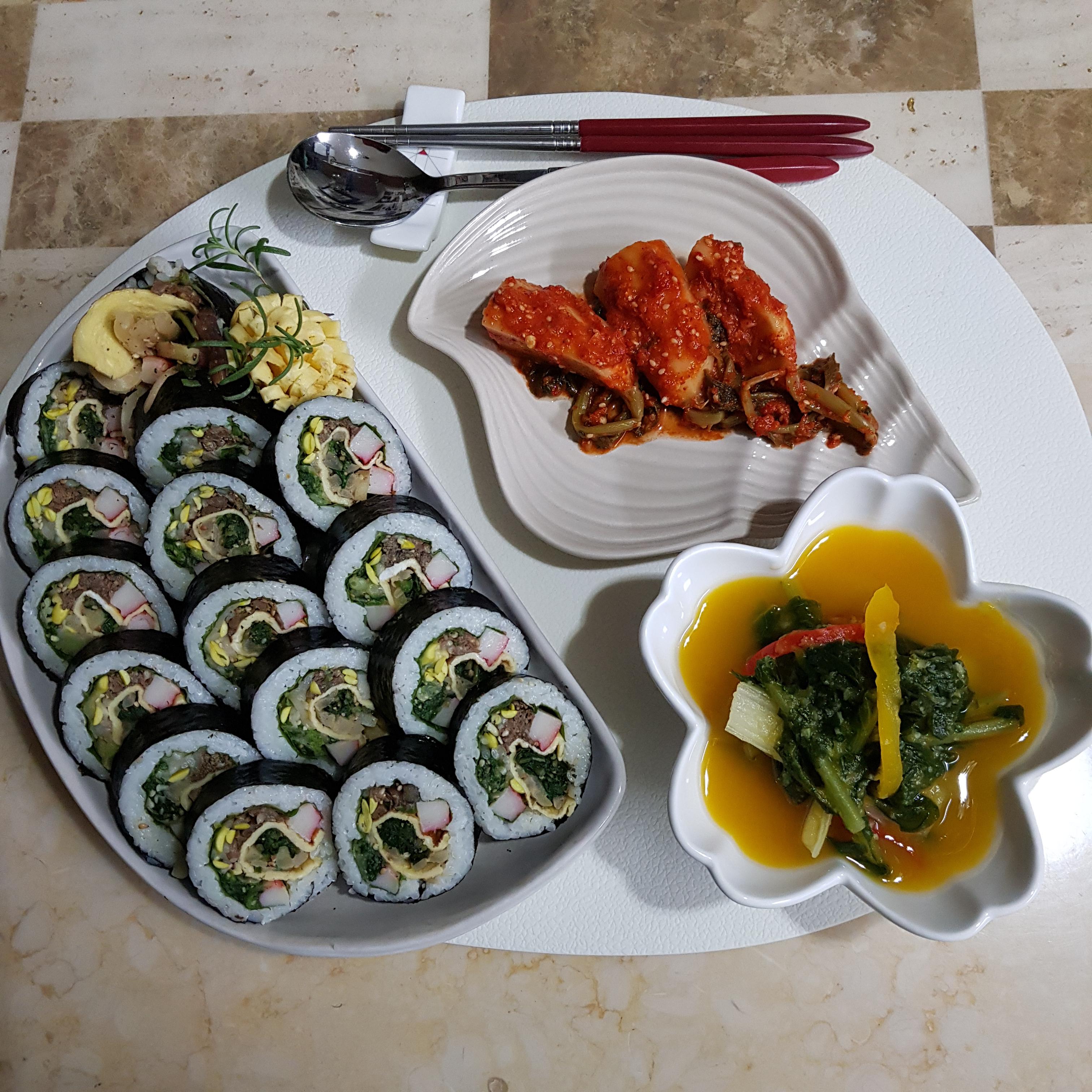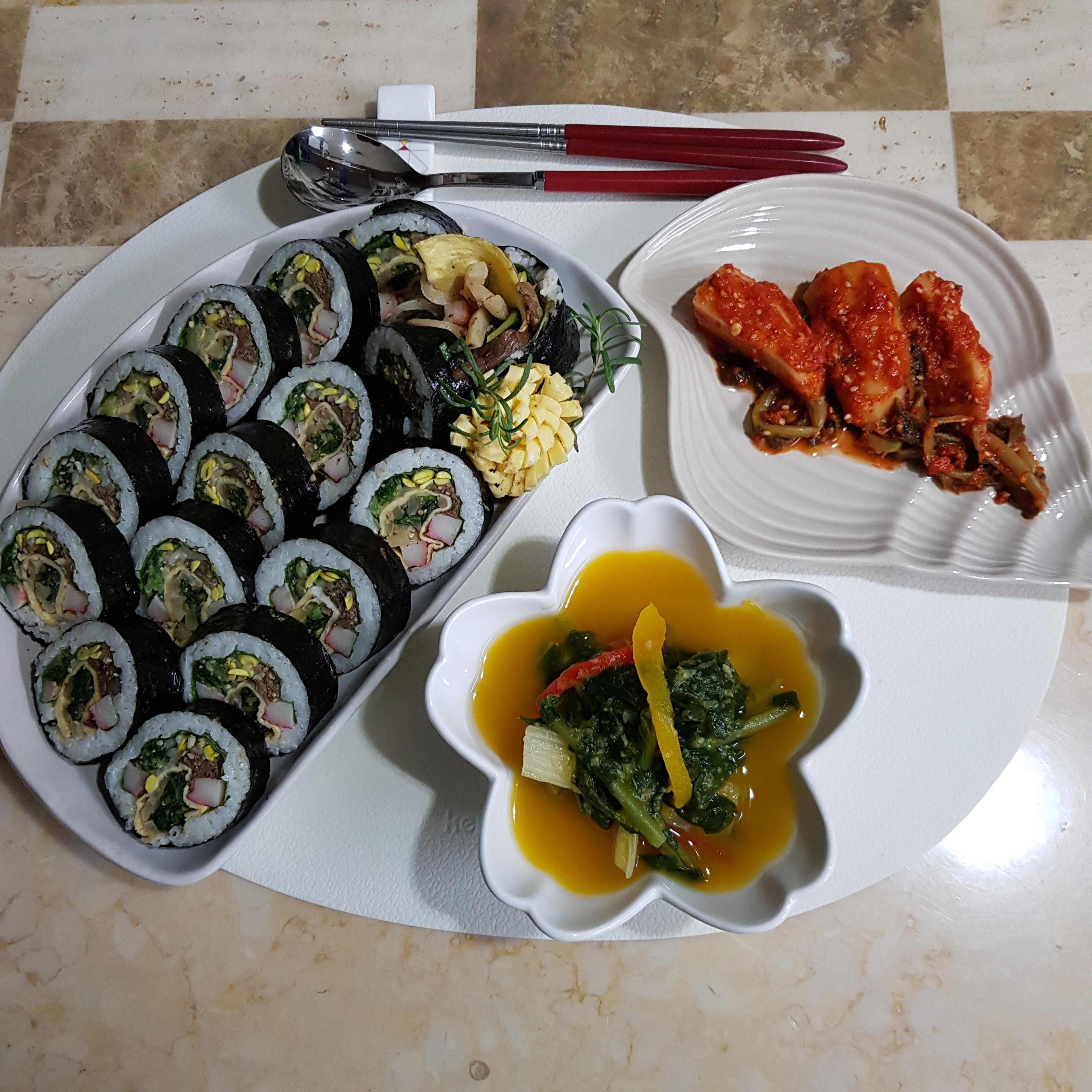 명절음식활용 나물김밥 만드는 법 참 간단하죠? 단호박 열무물김치와 깍두기랑 먹으니 촉촉하니 너무 맛있네요~^^ 지난 추석엔 물가도 많이 올라 힘들게 장만한 명절음식! 버리면 너무 아까우니 나물김밥이나 나물전 등 남은 재료로 지혜롭게 활용해 같은재료 다른 맛으로 식탁에 올려보시고 풍성한 10월이 되시길 바랍니다^^