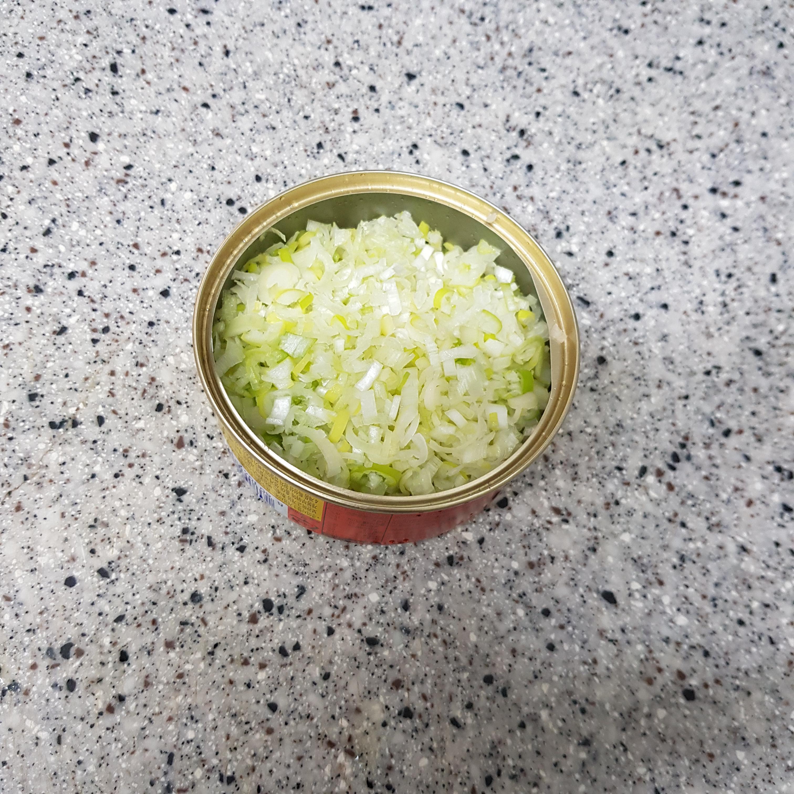 ▶ 대파 흰부분과 단무지는 잘게 다져서 빈 참치캔 하나 양만큼 계량해주세요