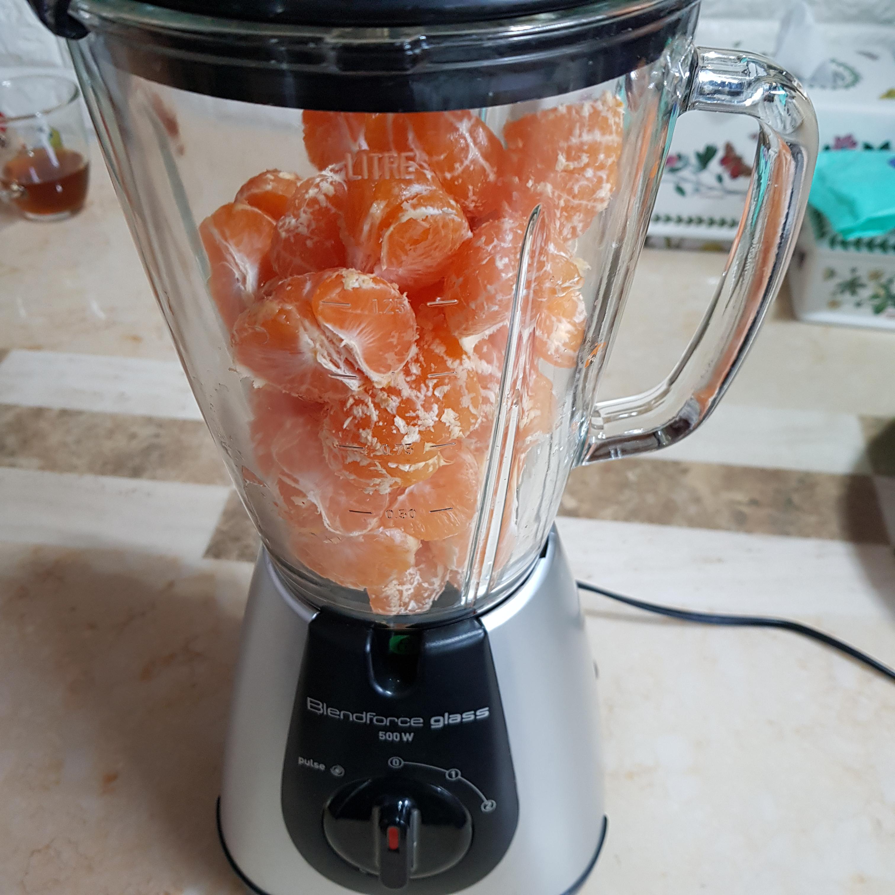 ▶ 껍질 벗긴 귤은 믹서기에 곱게 갈아주세요 씹히는 식감을 원하시면 약간 거칠게 갈아주시고 입맛에 맞게 갈아주시면 되세요