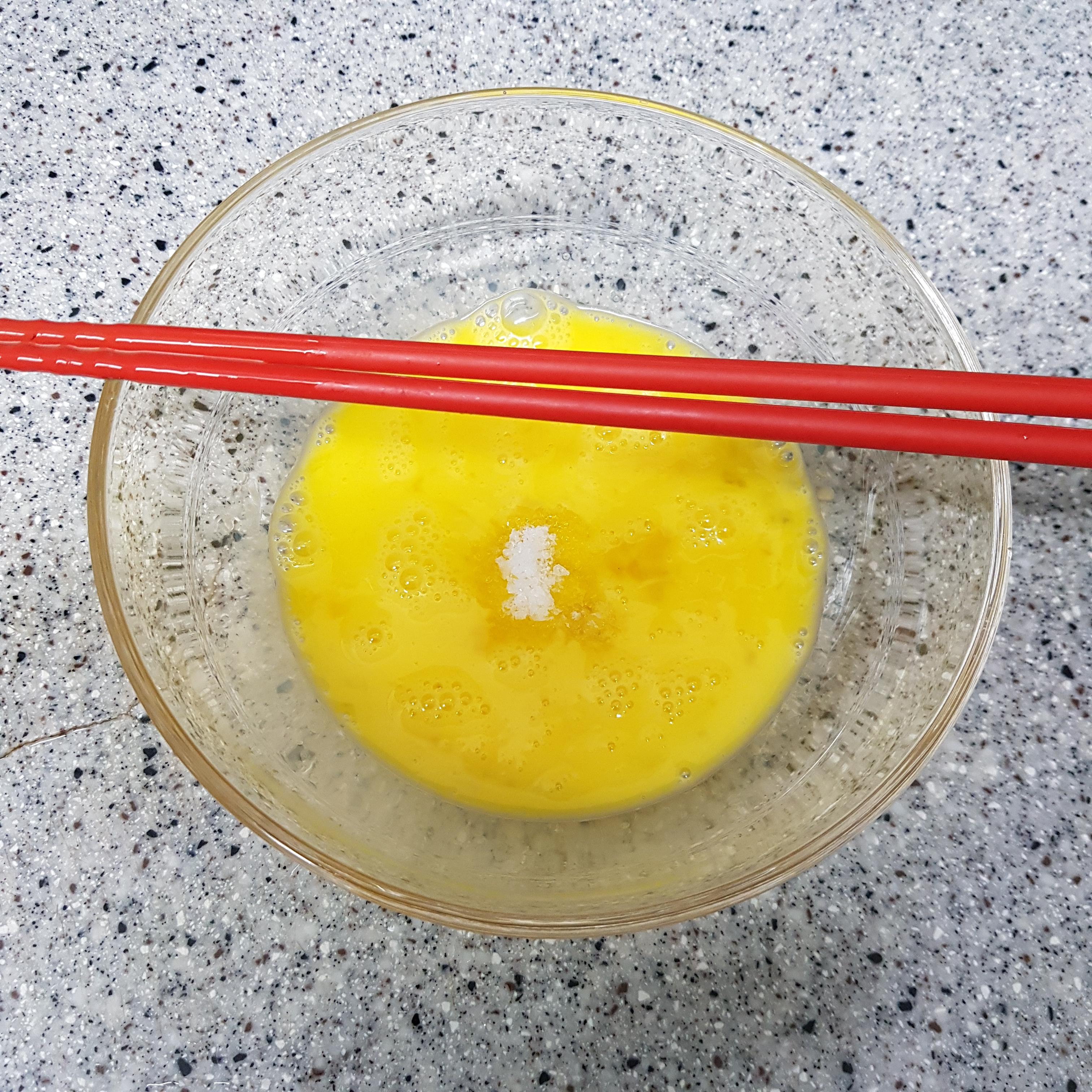 ▶ 적당한 크기의 볼을 준비한 후 달걀 2개를 풀어주고 고운 소금 반티스푼을 넣고 골고루 섞어주세요 굴전 만드는 법 완성 후 초간장에 찍어 드실꺼라면 소금은 소량만 넣어주세요