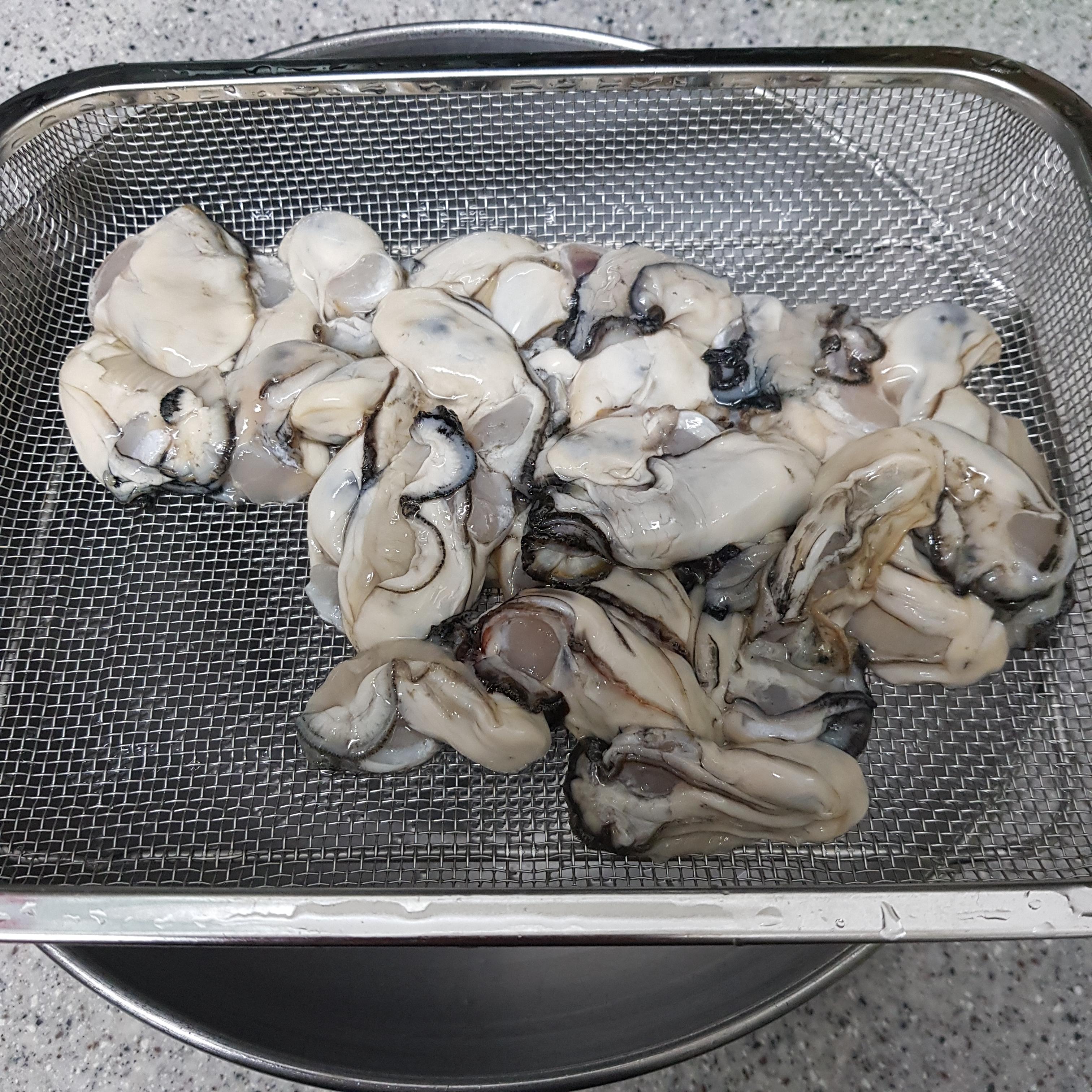 ▶ 굴은 깨끗이 씻은 후 채반에 밭쳐 준비해주세요 자세한 굴 세척 방법은 아래 글을 참고해주세요
