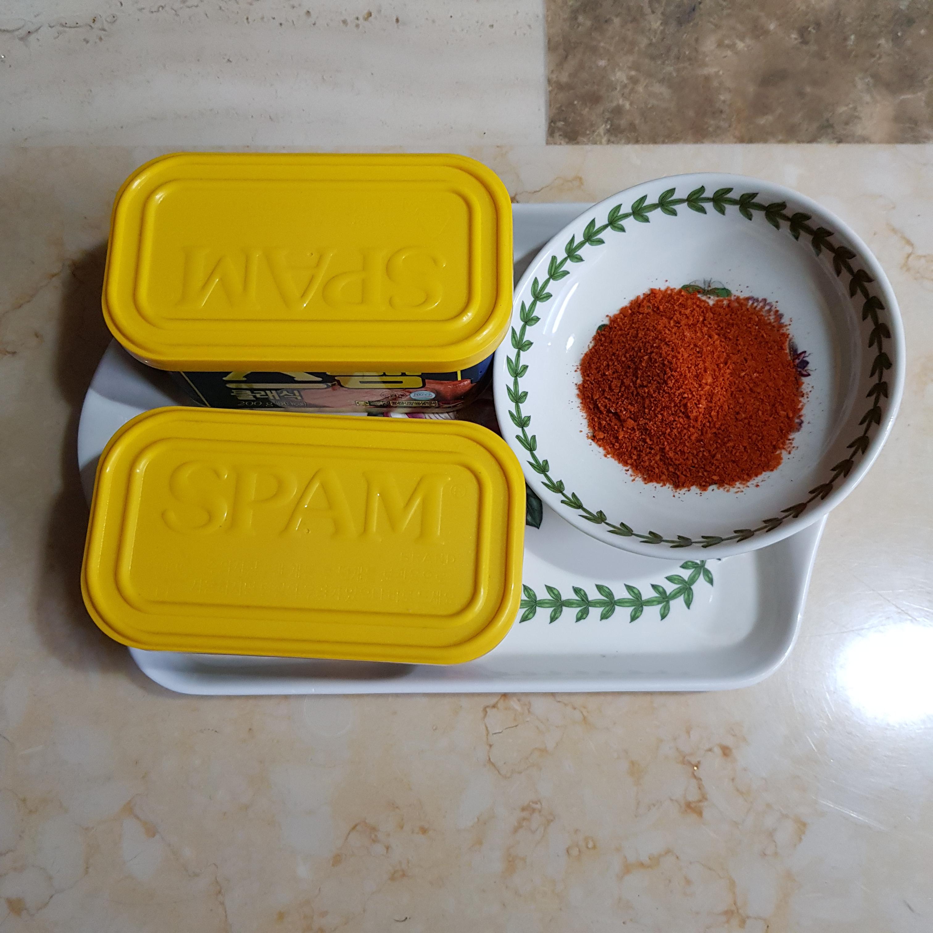 시판용 스팸 2캔(400g), 고운 고춧가루 1티스푼