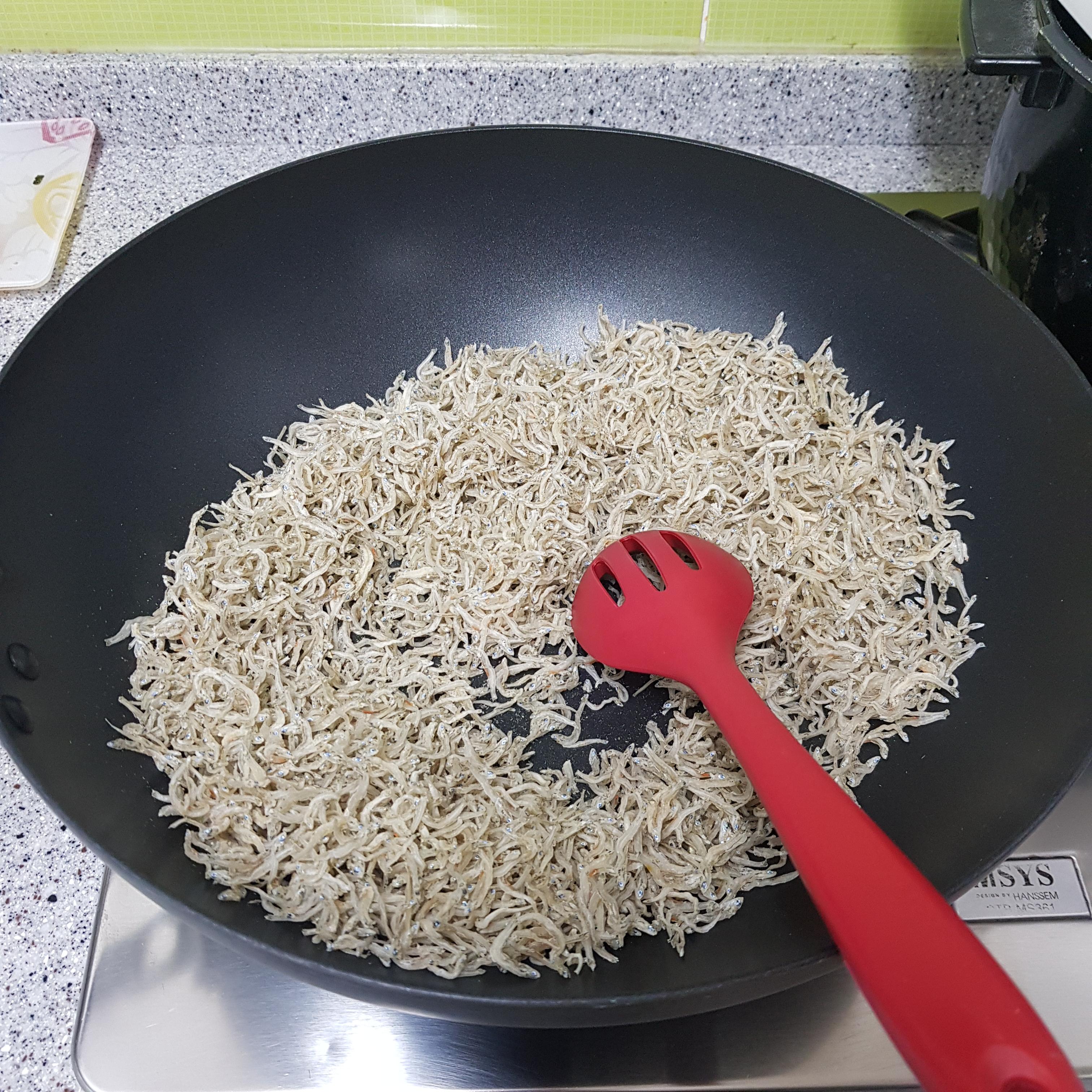 ▶ 보통 멸치는 냉장실 또는 내동실에 보관해 잡내가 베여 있을 수 있어 마른팬에 애벌 볶기를 해줘야 된답니다 마른 팬을 센 불에서 달궈주세요